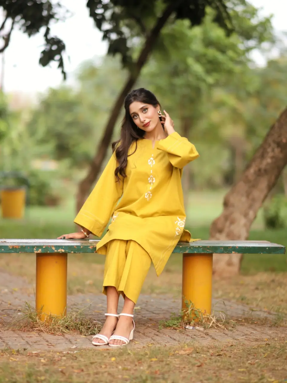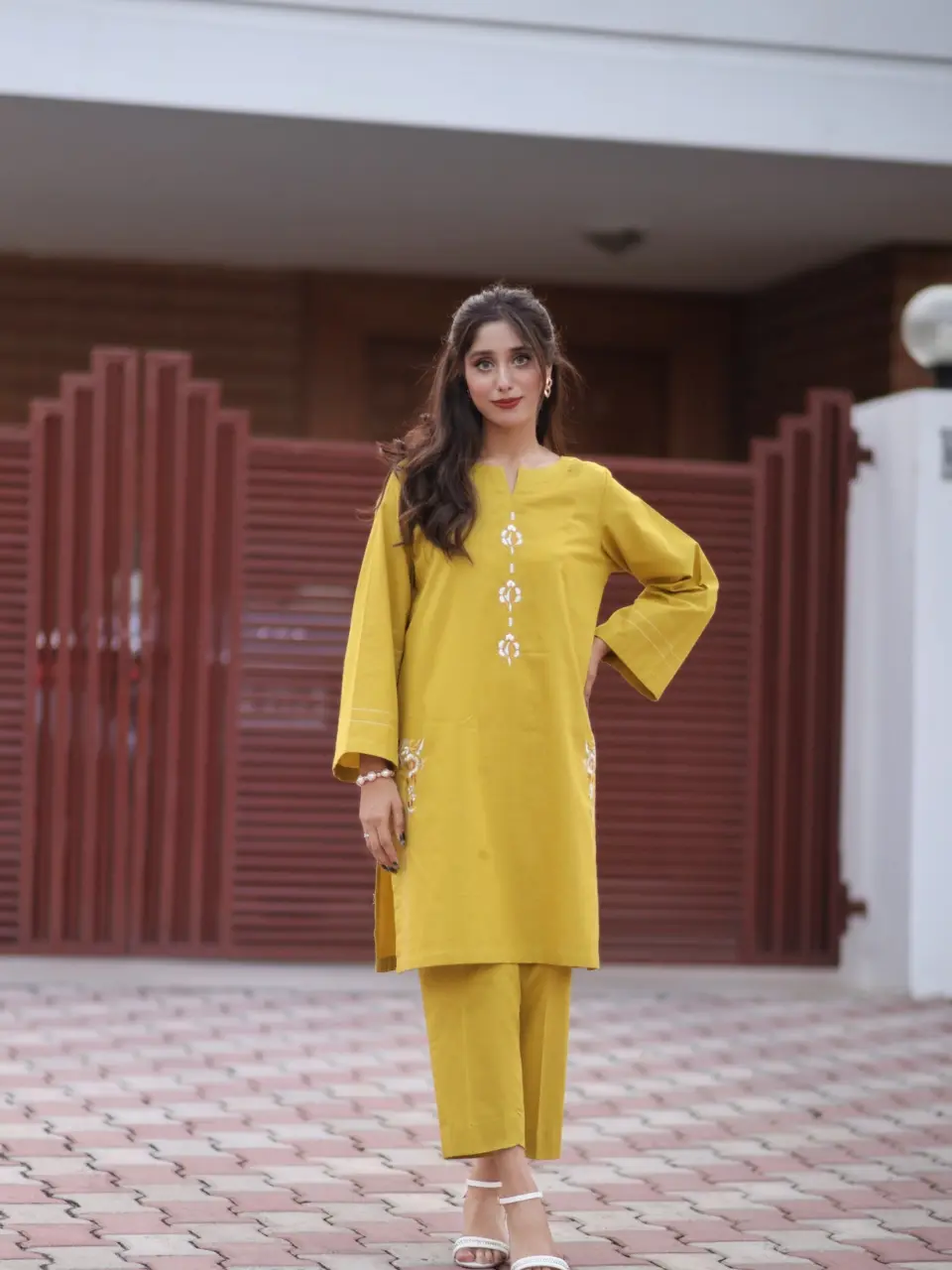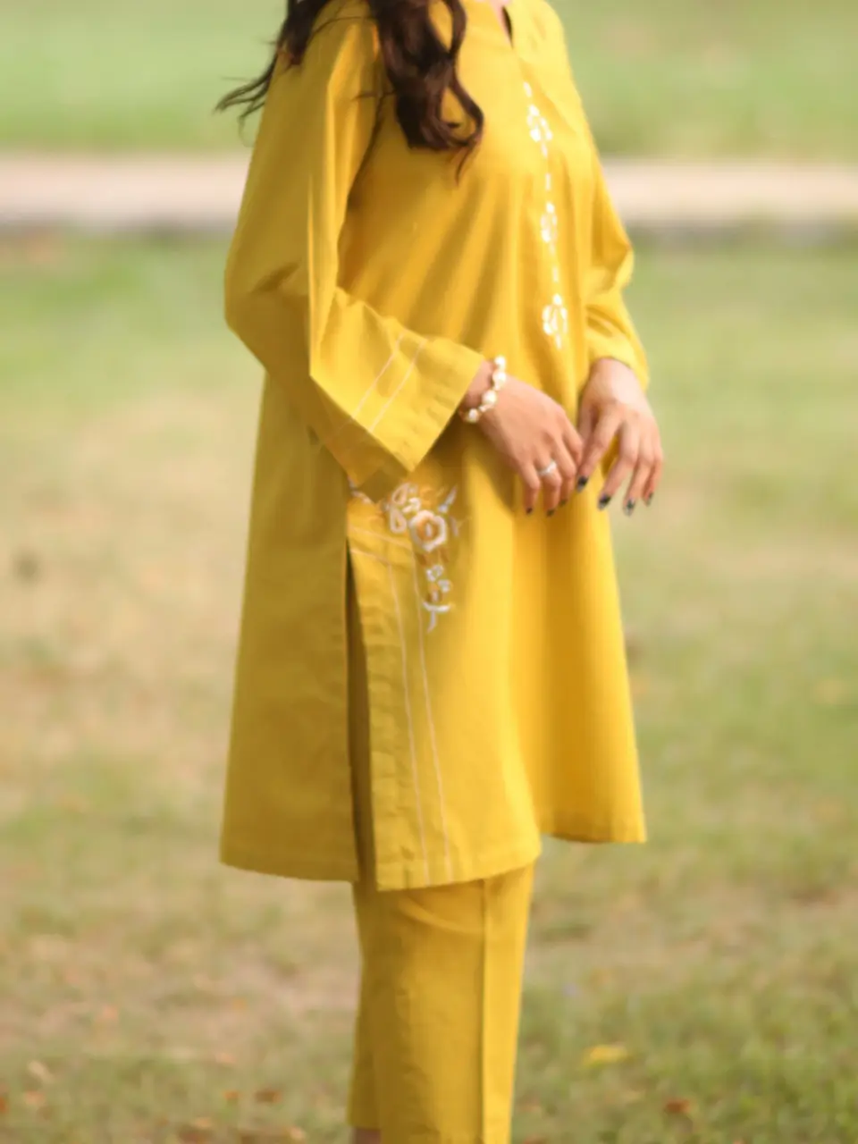 Two Piece Mustard Yellow-Slub Khaddar